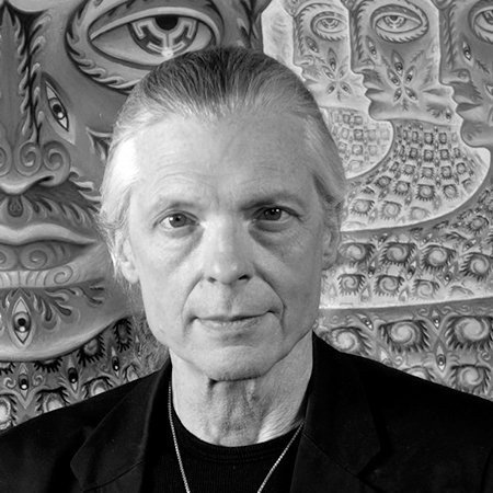 Alex Grey is best known for his paintings which “X-ray” multiple dimensions of reality, interweaving physical and biological anatomy with psychic and spiritual energies. Grey’s visual meditation on the nature of life and consciousness, the subject of his art, is contained in three books. His two monographs, Sacred Mirrors and Transfigurations, follow the history of Grey’s artistic life. The Mission of Art reflects on art as a spiritual practice. Grey’s world renown career includes exhibitions and keynote addresses from Basel, to Tokyo, to Sao Paulo, and features on the Discovery Channel, in Newsweek and Time Magazines. Grey’s art has been used on albums for the multi-platinum bands Nirvana, Beastie Boys, Tool, and String Cheese Incident.